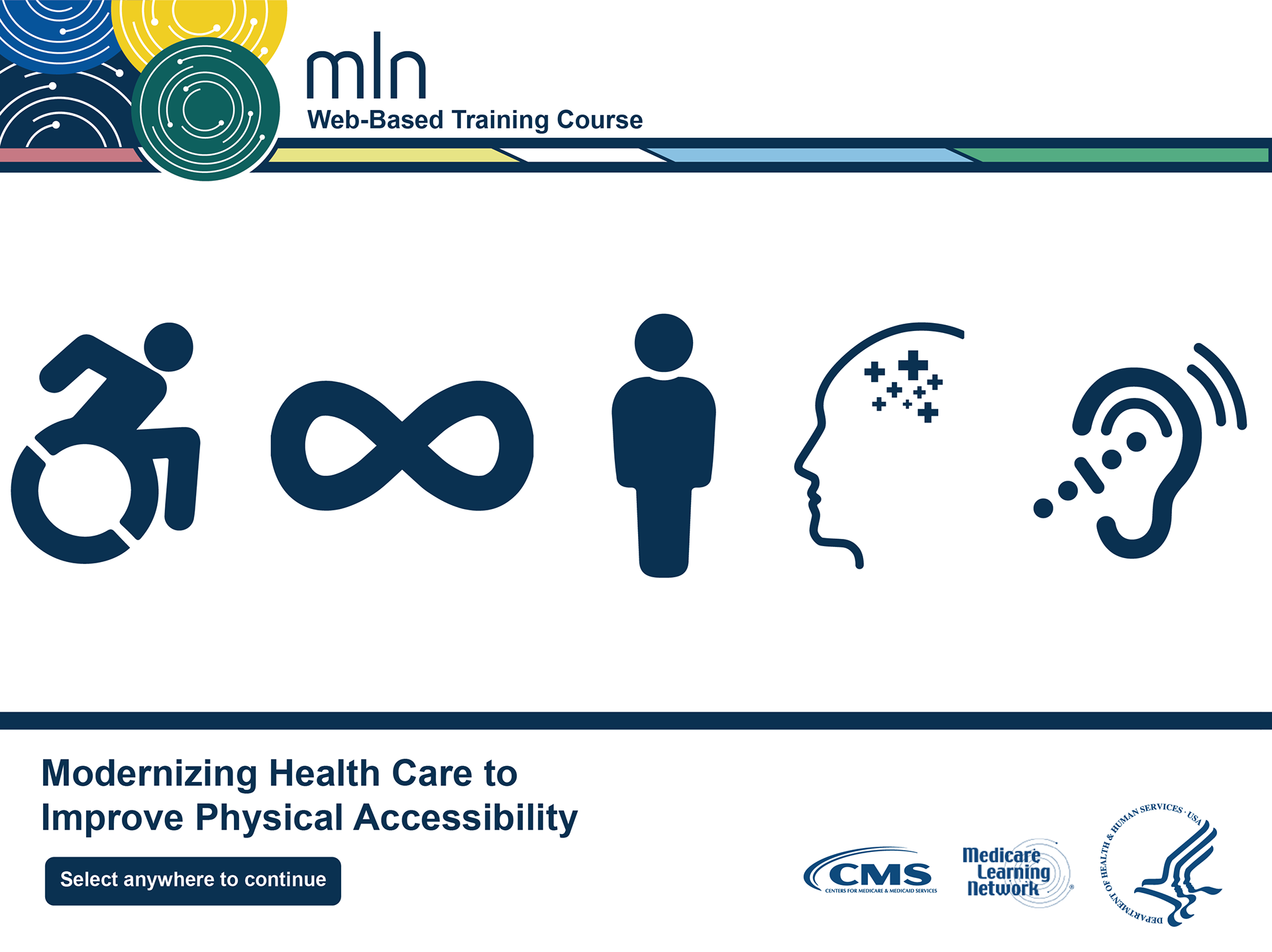 Splash page development for the Modernizing Health Care to Improve Physical Accessibility Web Based Training.